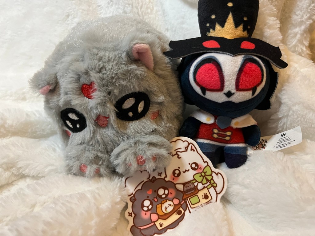 I’ve also recently gotten very, very into Hazbin Hotel/Helluva Boss. Honestly I’ve kind of been downplaying how much I enjoyed it to my husband. Partially because I find it embarassing for reasons I can’t quite figure out and partially because I really dislike slidding into new hyper-fixations. But! I made an offhand comment to my husband about maybe getting a little Stolas keychain someday and he got me one last minute WAAAAAH He’s my new work buddy.
