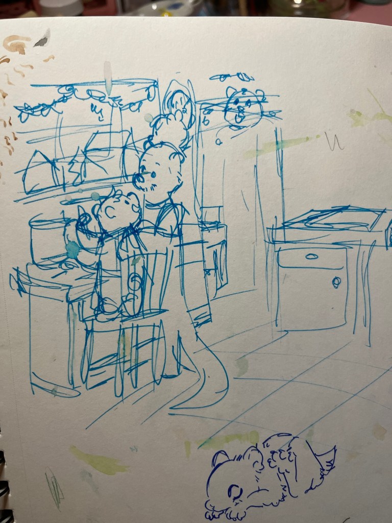 If you read through all of this you can have a treat! Some recent sketchbook work. 😀